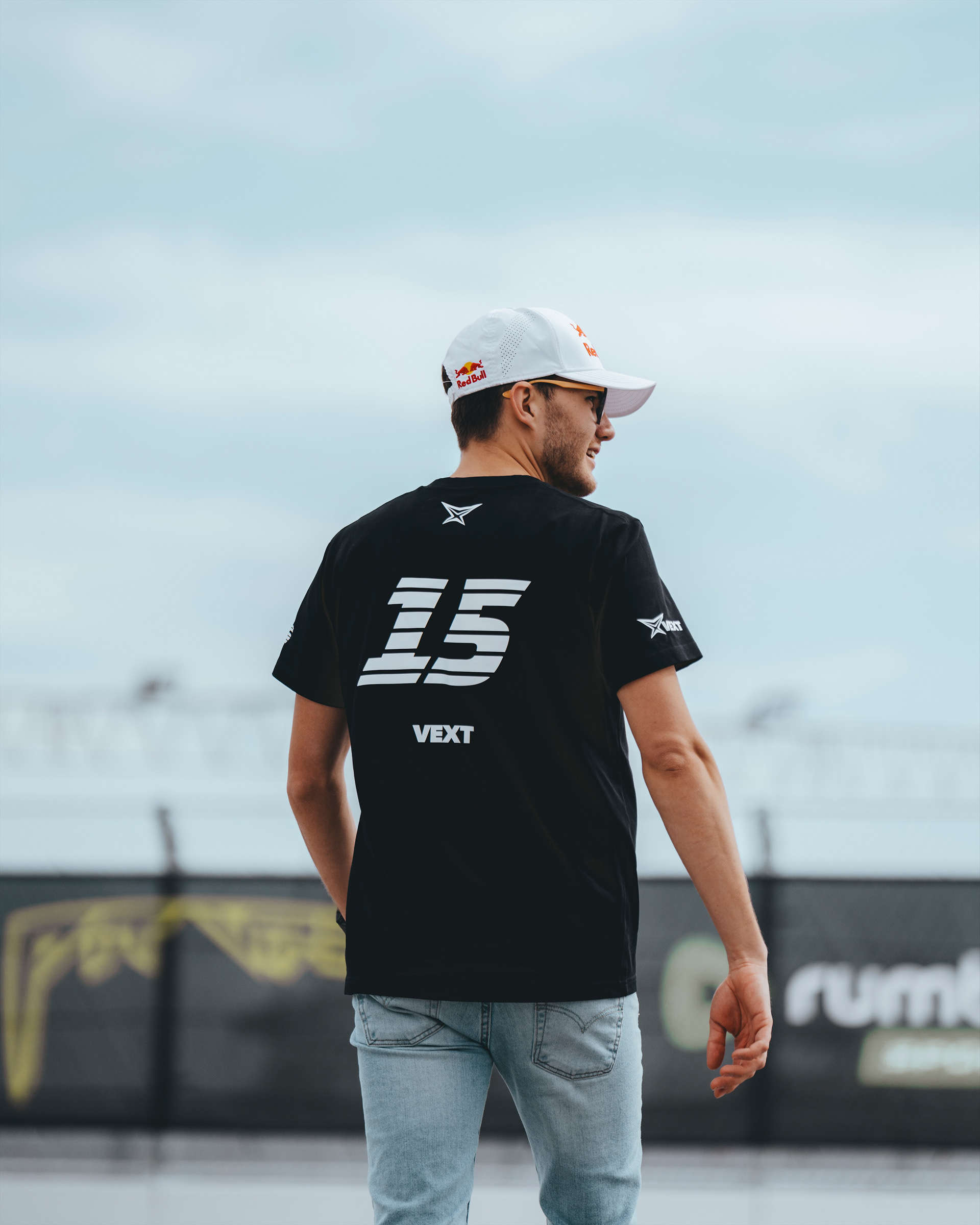This year, VEXT participated in the Nitrocross event in Las Vegas, Nevada, with Timmy Hansen as their driver. I was responsible for designing the team uniforms, which were inspired by F1 driver merchandise. The number 15 was given a racing-themed design for the weekend. Additionally, I designed the social media coverage for the event.